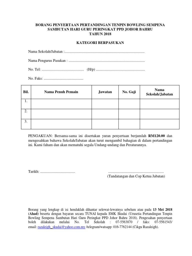 Borang Penyertaan Pertandingan Tenpin Bowling Sempena Pdf